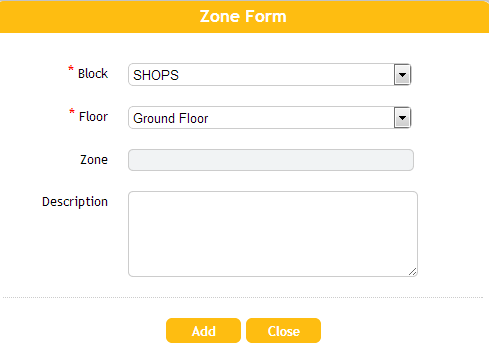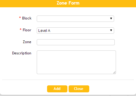 4. Make required changes in the Zone Form.Choosing the "Block" and "Floor" from drop down menu are mandatory.