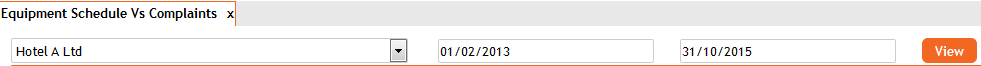 1. To view Equipment Schedule Vs Complaints, Select Equipment Schedule Vs Complaints from the options.
