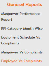1. To view Employee Vs Complaints, Select Employee Vs Complaints from the options.