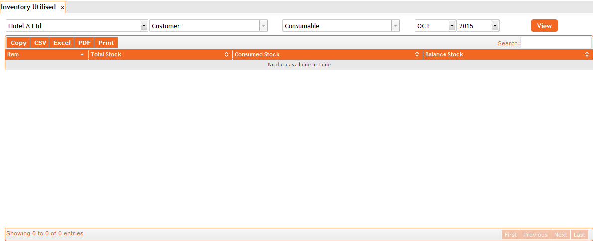 1. To view Inventory Utilised Reports, Select Inventory Utilised from the options.